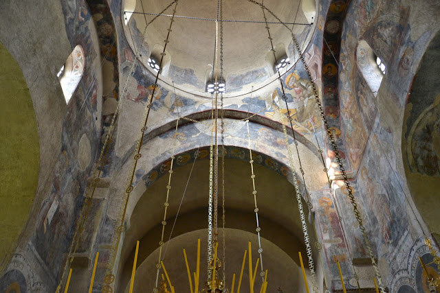 Ściany cerkwi zdobione są jaskrawymi mozaikami, które układano kilka lat - ale trudno się dziwić, bo zużyto 40 milionów kafelków do przedstawienia scen biblijnych, świętych oraz dawnych królów-fundatorów świątyń.