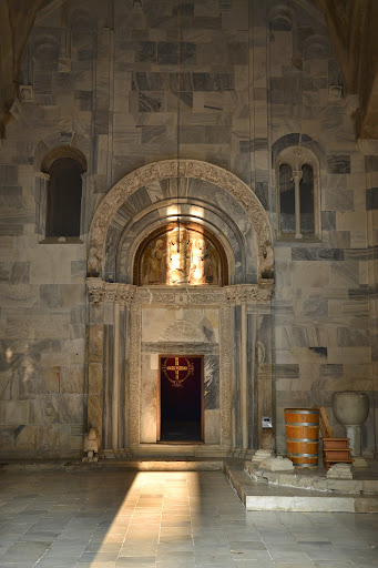 Otoczony murami, do których przylegały (a częściowo przylegają nadal) zabudowania gospodarcze i mieszkalne, powstał już w XII wieku. W centrum stoi Cerkiew Zaśnięcia Bogurodzicy, zbudowana z lśniącego marmuru (to rzadkie rozwiązanie w tych stronach).