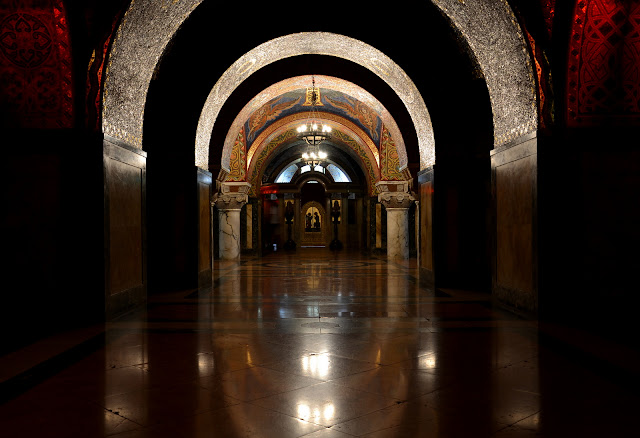 W cerkwi spoczywa protoplasta rodu (przedtem leżał w starej cerkwi u podnóża góry) oraz Piotr, pierwszy król z tej dynastii, po krwawym obaleniu poprzedników - Obrenowiciów. Krypty robią chyba jeszcze większe wrażenie niż sam kościół - spowite w mroku kolorowe korytarze...