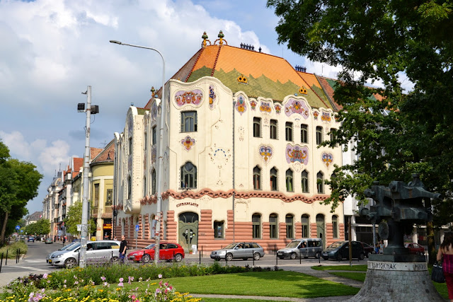 Pierwszy dłuższy postój to węgierskie miasto Kecskemét - było na liście zwiedzania już 2 lata temu, ale z powodu korku na obwodnicy Budapesztu trzeba było to odłożyć. Dziś korków nie ma, więc możemy trochę połazić po centrum. Miasto, poza tym, że produkuje się tutaj palinkę, słynie głównie z secejnej zabudowy z okresu belle époque.