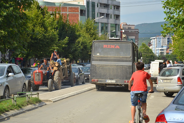 .. z drugiej szukam możliwości zakupu ubezpieczenia. W końcu proszę o pomoc miejscowych - albańska burza mózgów i kierują nas na jakieś zadupie, gdzie jest izba celna czy coś takiego. Po lekkim błądzeniu udaje mi się trafić i nawet kupić ten dokument, ale pan urzędnik wypełniał go tak, jakby robił to pierwszy raz w życiu (skąd my to znamy?). Zaglądamy też do supermarketu, chyba jednego z większych w mieście - jakieś 80% towarów importowanych z Niemiec, rzadziej z innych krajów EU. Własnych marek ledwie garstka (jest w Kosowie tylko jeden browar...).