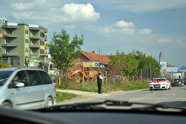 Nie trwa to jednak długo - po kilkunastu kilometrach wewnątrz-etniczna granica, zasieki, próg zwalniający i wieża z żołnierzami KFOR, po czym wjeżdżamy na tereny albańskie. Wkrótce potem już rogatki najbardziej zapalnego punktu w Kosowie - Mitrovicy.