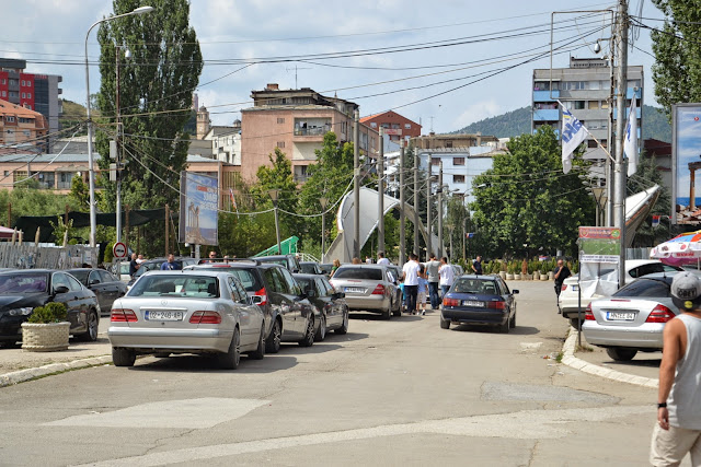 Samochody jeżdżą bez tablic rejestracyjnych (odmawiają założenia kosowskich) albo na współczesnych serbskich z literami KM. Jak widać kosowska policja to toleruje...