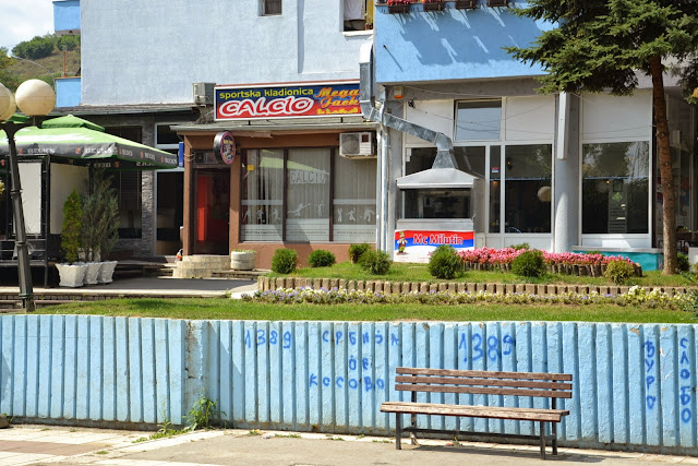 Za Ibarem inny świat, przypominający dawną Jugosławię. Architektura jak z lat 70. i 80., działa Jugobanka, która w Serbii została zlikwidowana już ponad 10 lat temu. Zamiast McDonalda - McMilutin 😛.