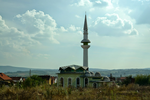 Obrazki z głównej drogi na Prisztinę - kolejne nowe meczety o rozmaitych kształtach...