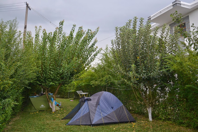 Zanim tam dotrzemy zajeżdżamy jeszcze na kemping w miejscowości Ura Vajgurore. Jaka tu cisza w porównaniu z Ksamil! Na zielonej trawie rozbite ledwie ze dwa namioty (oczywiście z Polski) i jeszcze tylko jeden kamper z Włoch. Super!