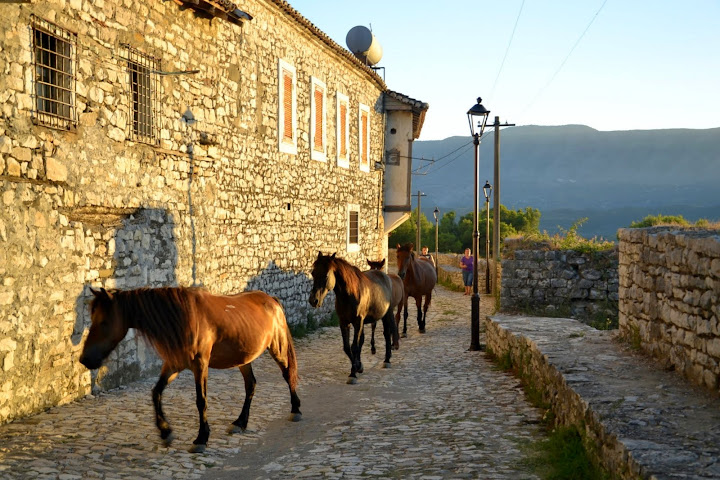 I to wszystko bez tłumu turystów, którzy kręcą się tutaj w ciągu dnia. A widoki z murów - równie piękne jak te z Gjirokastry, choć jednak zupełnie inne.