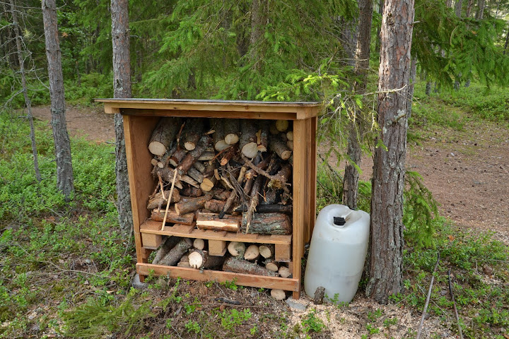...oraz miejsce odpoczynkowe, gdzie można rozpalić ognisko. Przygotowano dla turystów drewno i wodę do gaszenia 😀.
