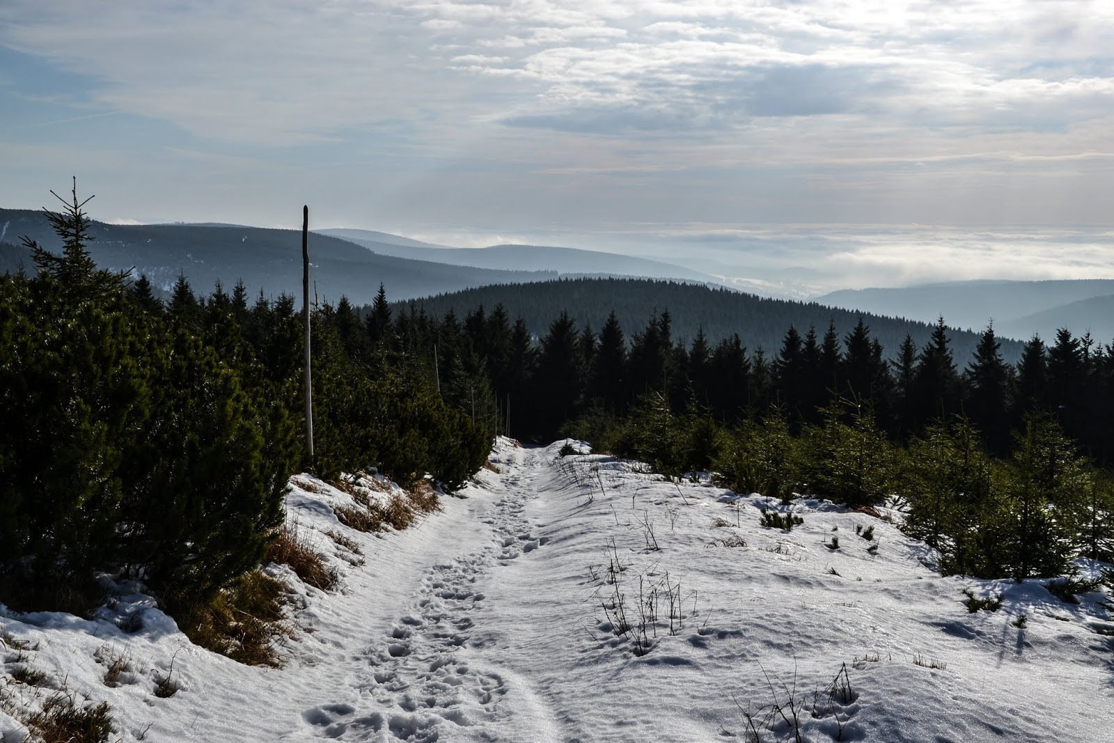 Zima pod koniec grudnia nie jest w górach niczym wyjątkowym, choć w ostatnich dniach występuje jedynie w wyższych partiach, co najmniej na wysokości 1000 metrów n.p.m.. Wpis dotyczy jednak wyjazdu z ostatniego piątku listopada, kiedy to w nizinach panowała optymistyczna jesień, a Sudety zabieliło bardziej niż dzisiaj.