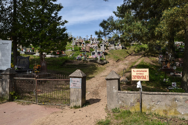 Idąc na przystanek mijamy smolnicki cmentarz. Tabliczka informuje, że tam śmieci składać nie wolno. Ciekawe czy można za murem?